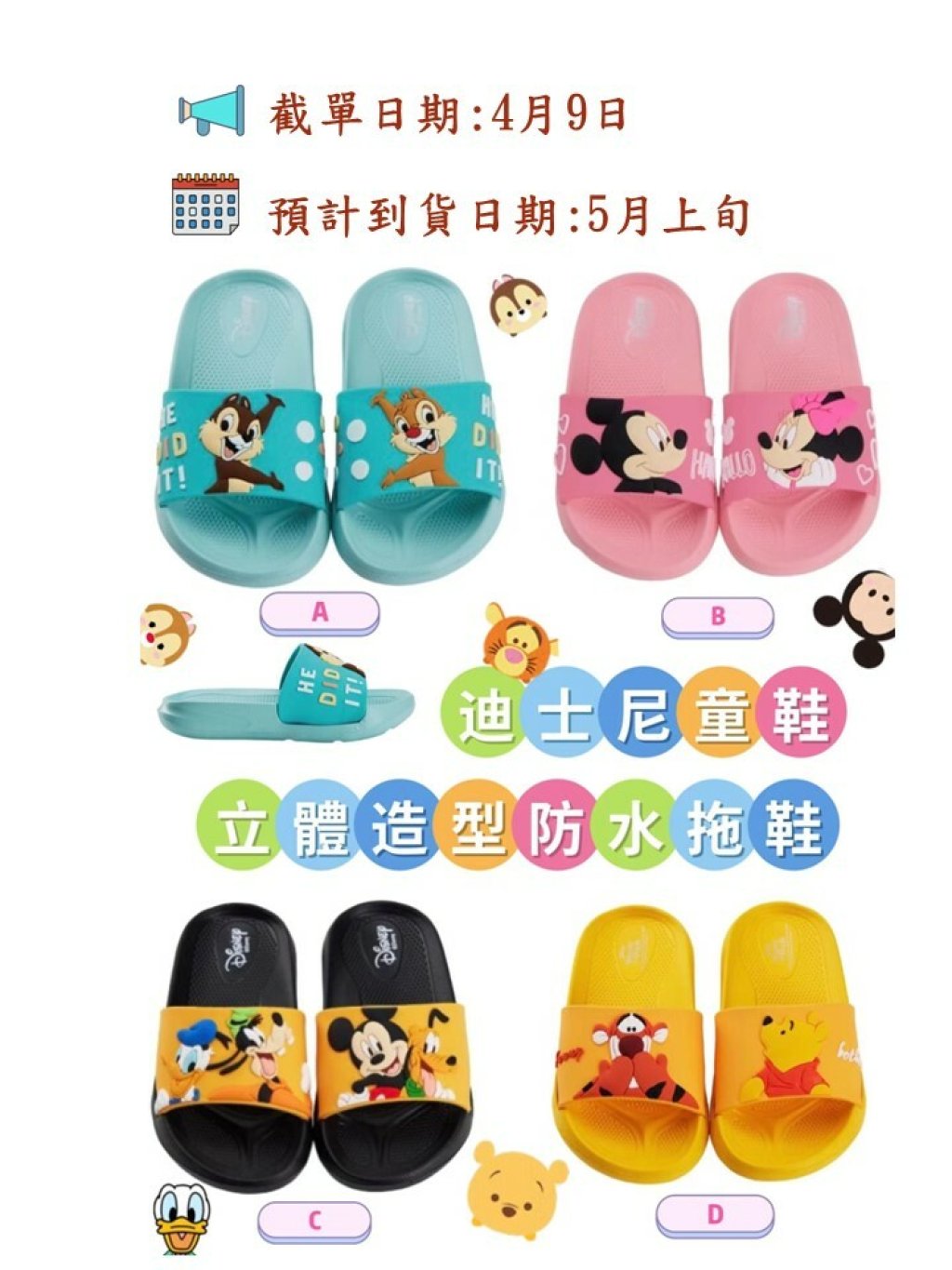 台灣 迪士尼童鞋不對稱造型飾片防水拖鞋