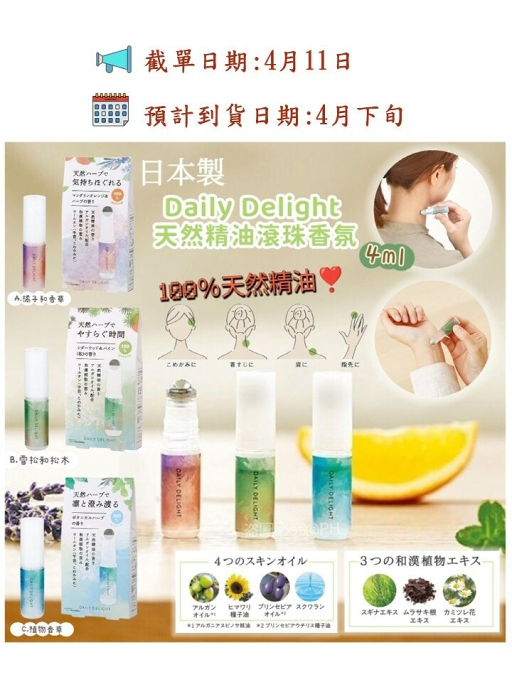 🎌日本製 Daily Delight 💯%天然精油滾珠香氛 4ml🎌