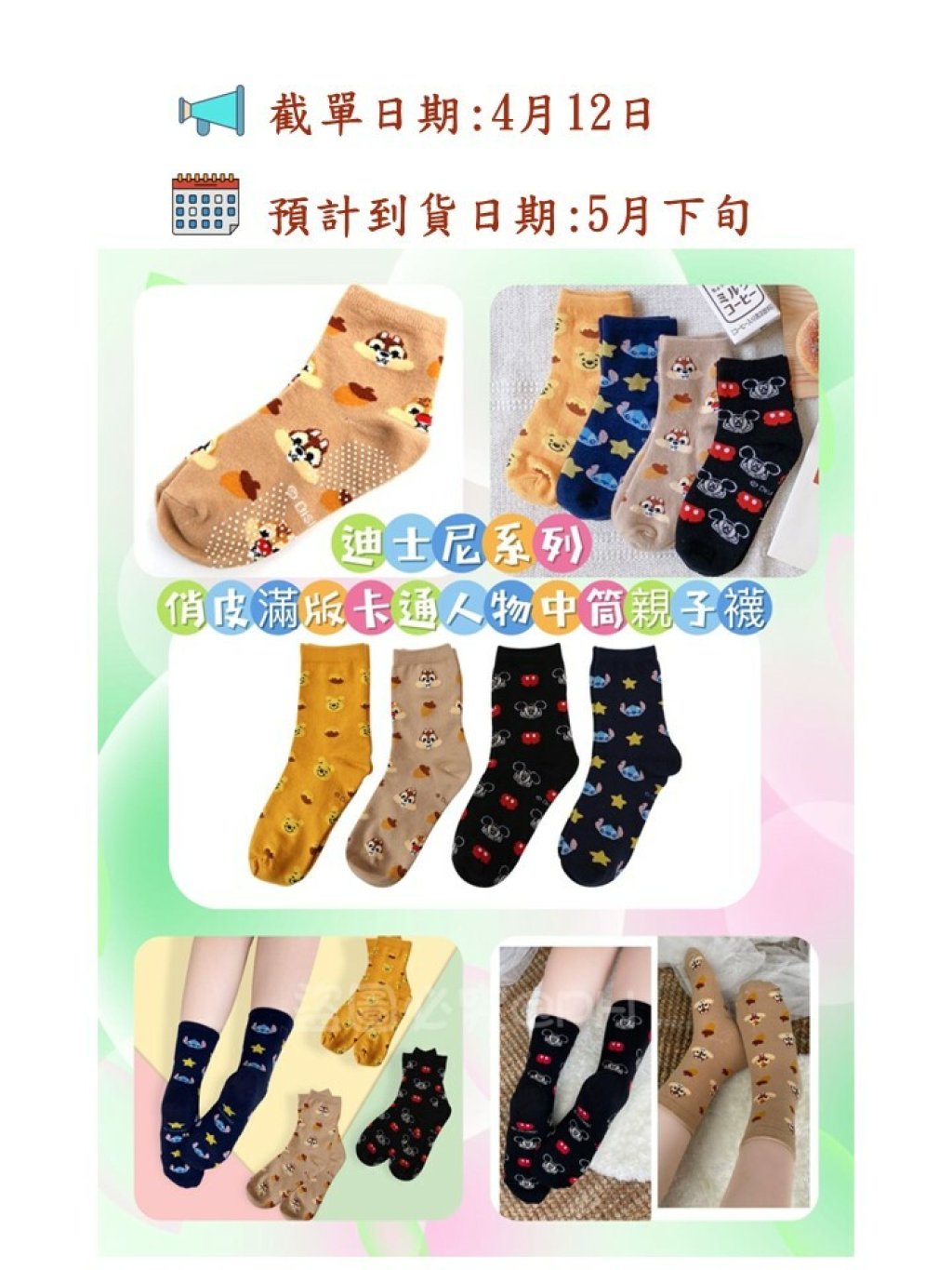 🟡台灣 迪士尼系列俏皮滿版卡通人物中筒親子襪 (1組4對)🟡