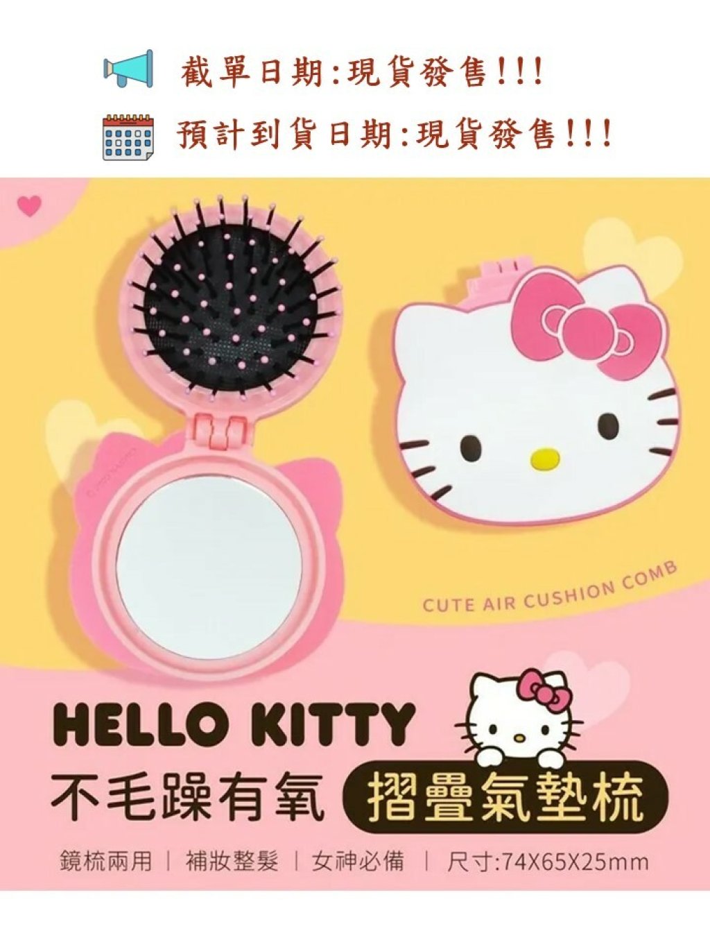 💗Kitty控千萬別錯過💗讓你噴發少女心💗有時候外出包包比較小💗能裝的不多就很需要這款💗鏡子+梳子融合一體💗讓你隨時保持頭髮妝容美貌❤️