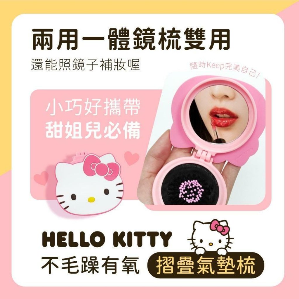 🟡台灣 Sanrio Hello Kitty 不毛躁有氧摺疊氣墊梳🟡