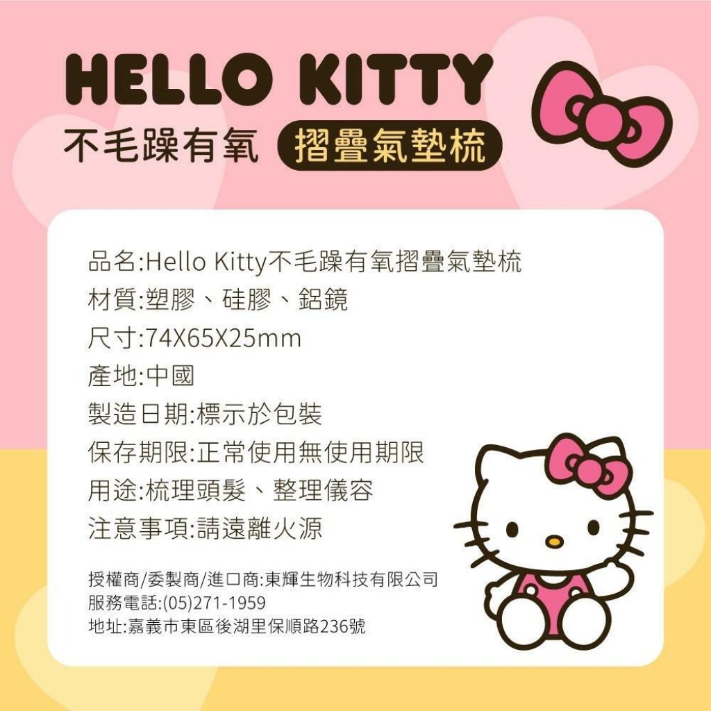 台灣 Sanrio Hello Kitty 不毛躁有氧摺疊氣墊梳