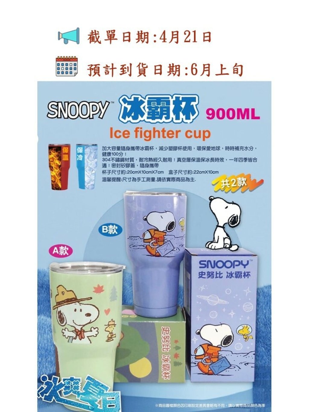 🟡台灣 努比 304不鏽鋼冰霸杯900ml🟡