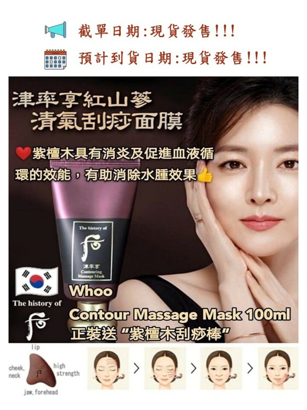 韓國 Whoo 后 津率享 紅山蔘刮痧按摩面膜 100ml送紫檀木刮痧棒