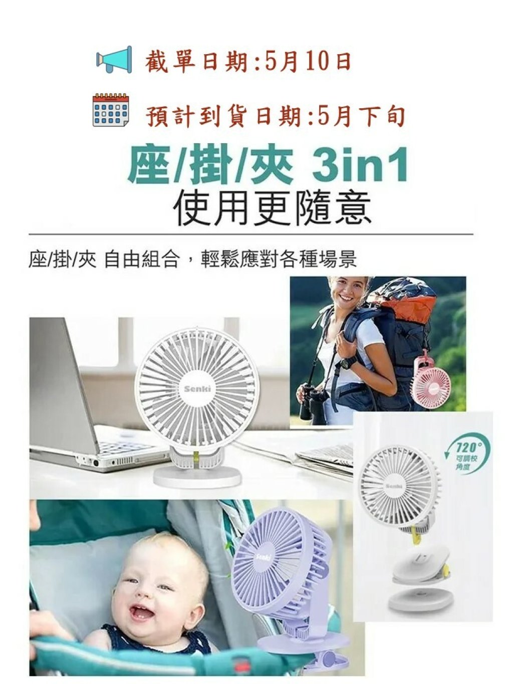 SENKI SK-S1 CUBE 座掛夾3in1小風扇