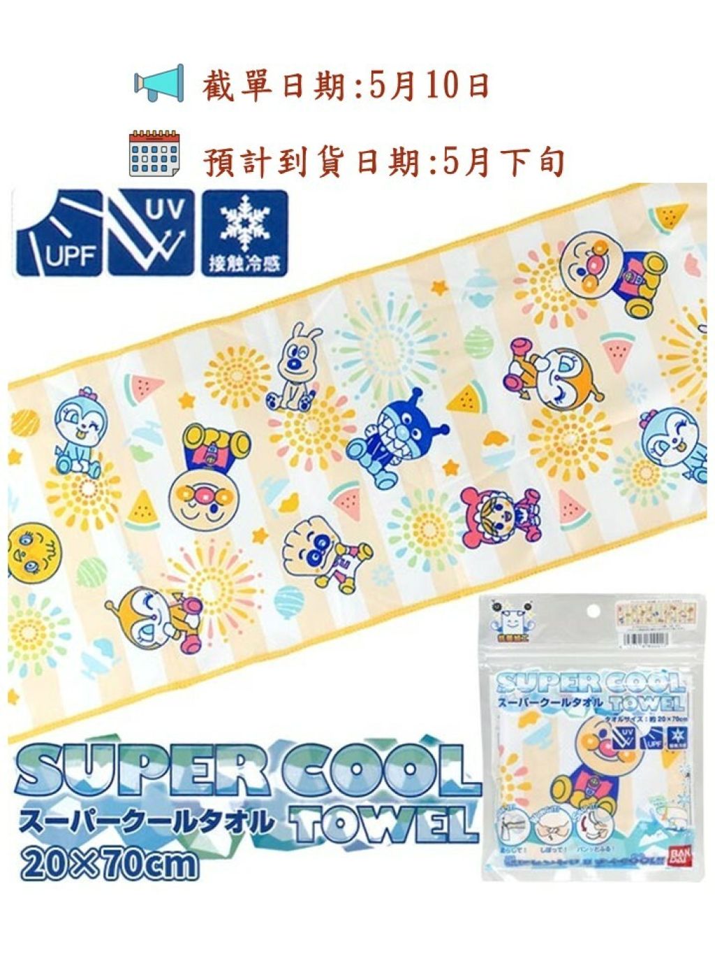🎌日本直送 麵包超人冷感超爽毛巾 (20×70cm)🎌