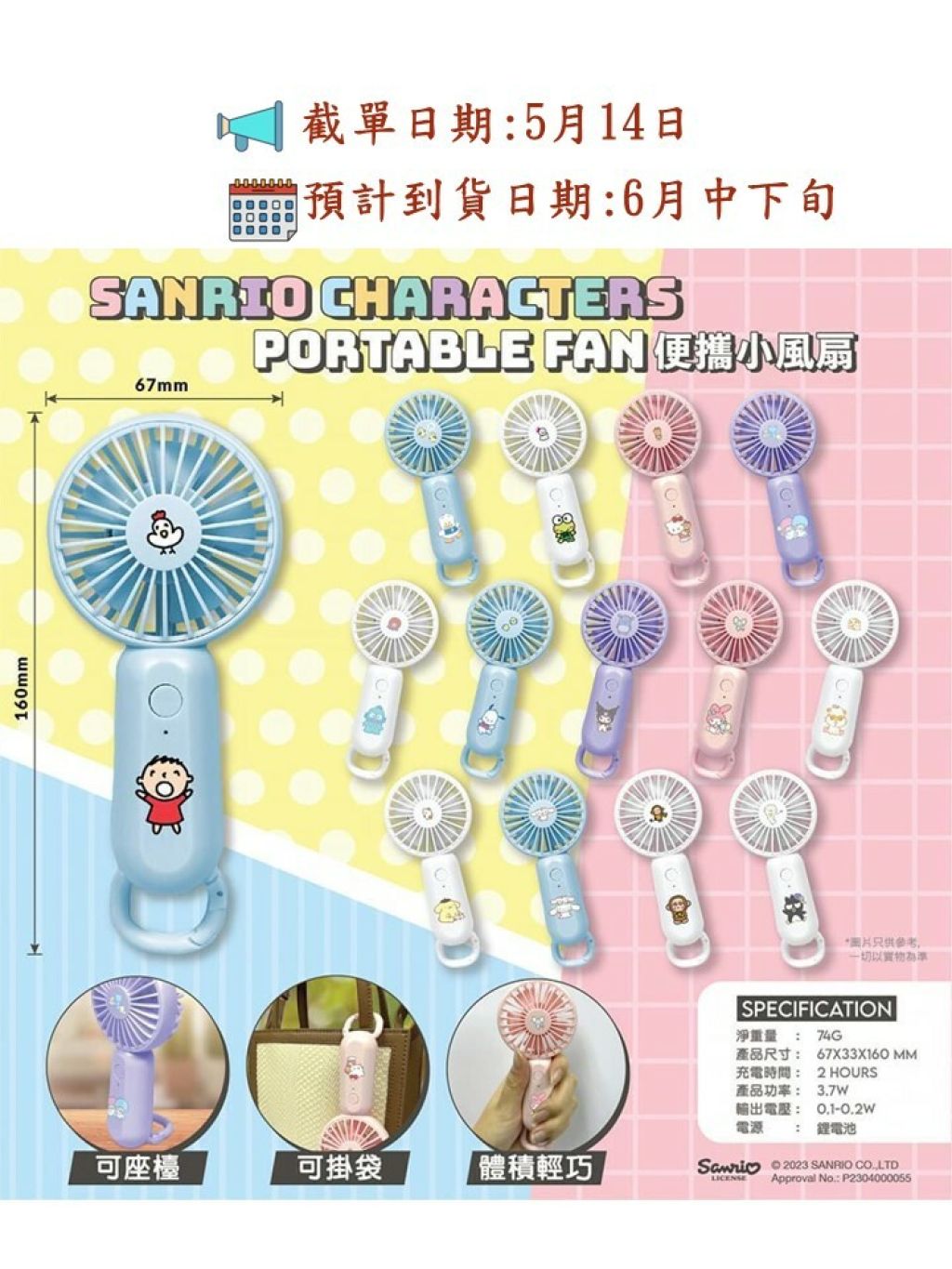 2023 Sanrio Character 新款手提風扇