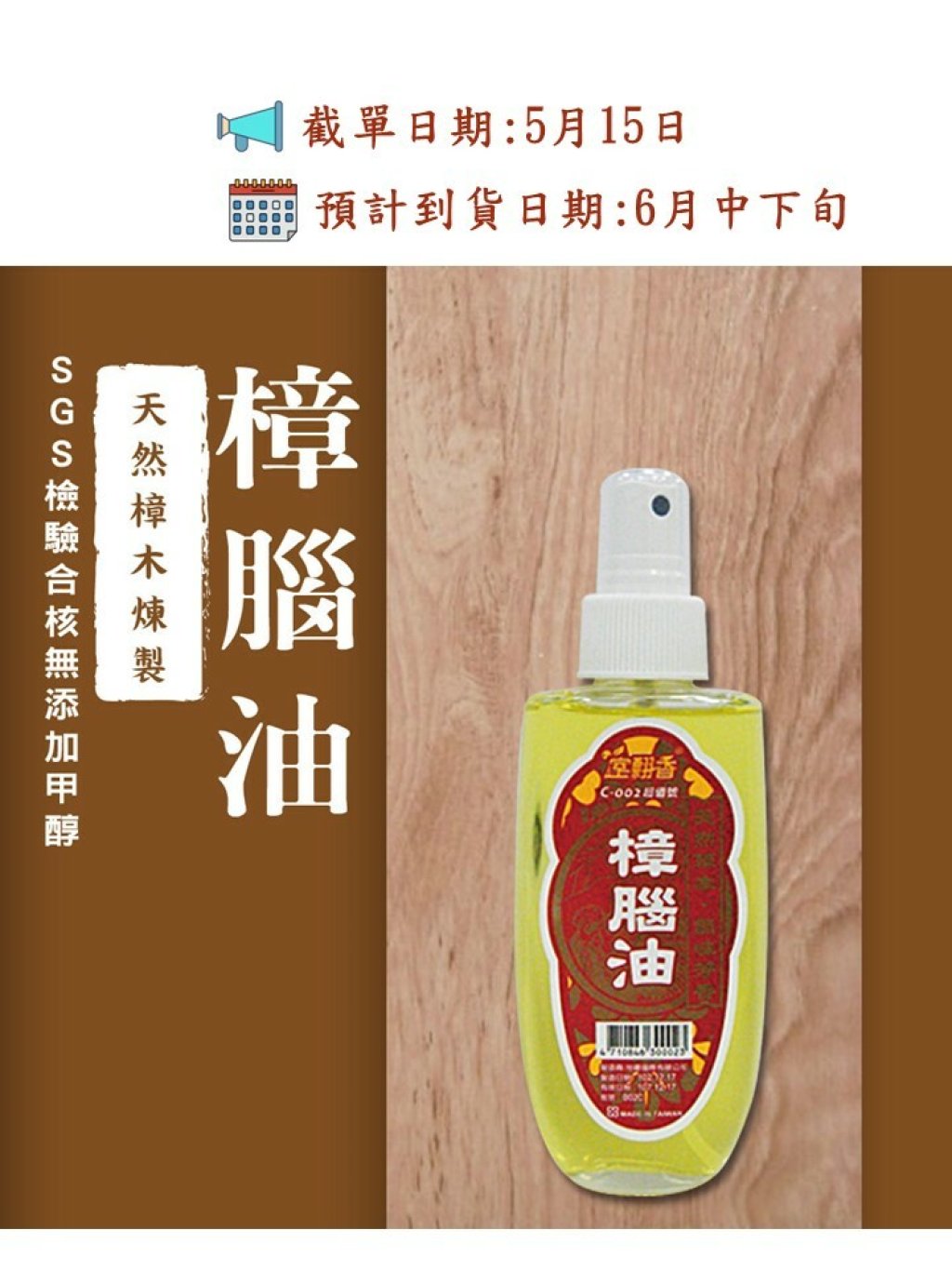 商品成分:天然樟腦油、稀釋油。