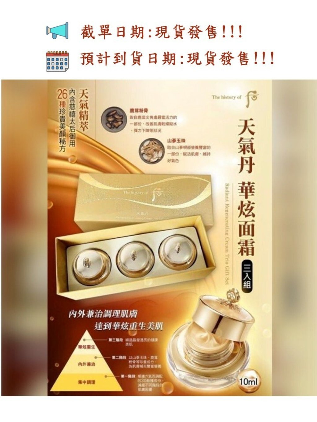 🌸The History Of Whoo 后天氣丹華炫重生霜 面霜中樣套裝 (一套10ml x3個)
