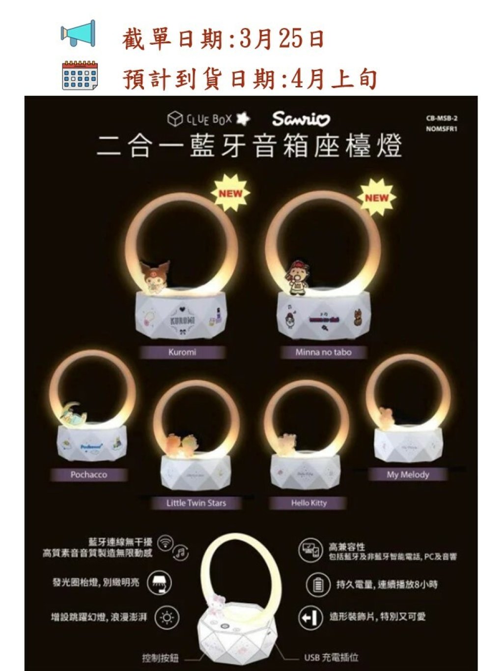 🌈Sanrio 二合一藍牙音箱座枱燈