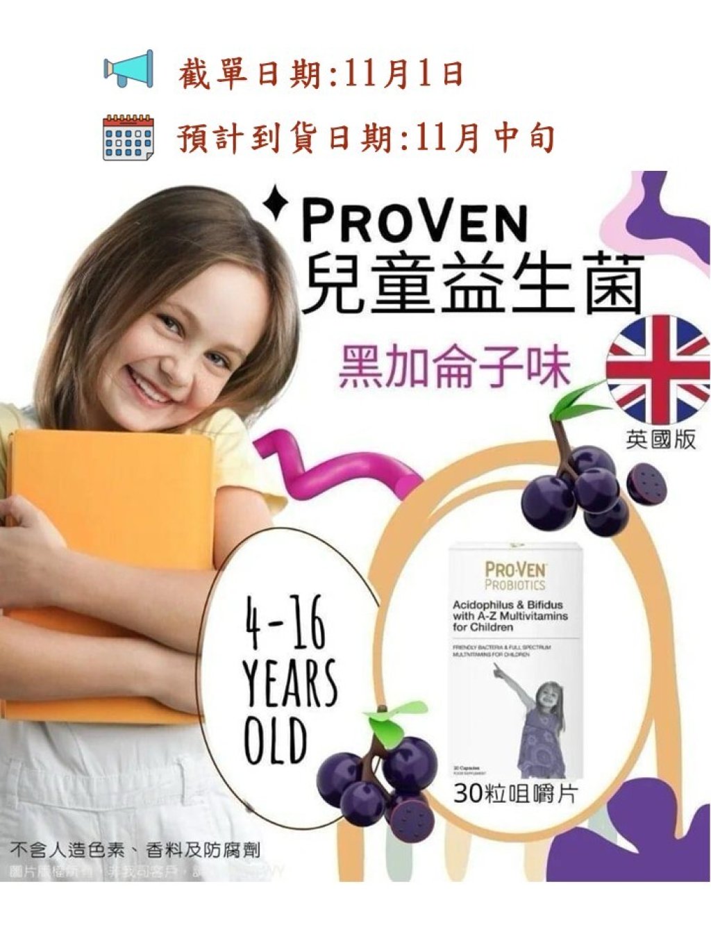 開團收單🥰😘PROVEN 兒童益生菌咀嚼片PROVEN (英國🇬🇧🇬🇧🇬🇧版)(1盒30粒) 🙌🙌🙌👧👦👩
