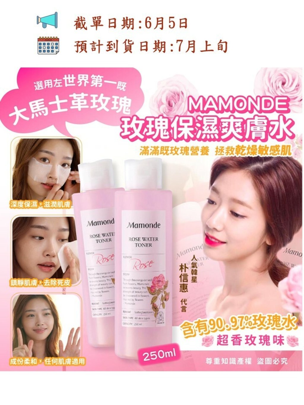 🔥韓國🇰🇷 MAMONDE 玫瑰保濕爽膚水 (250ml)