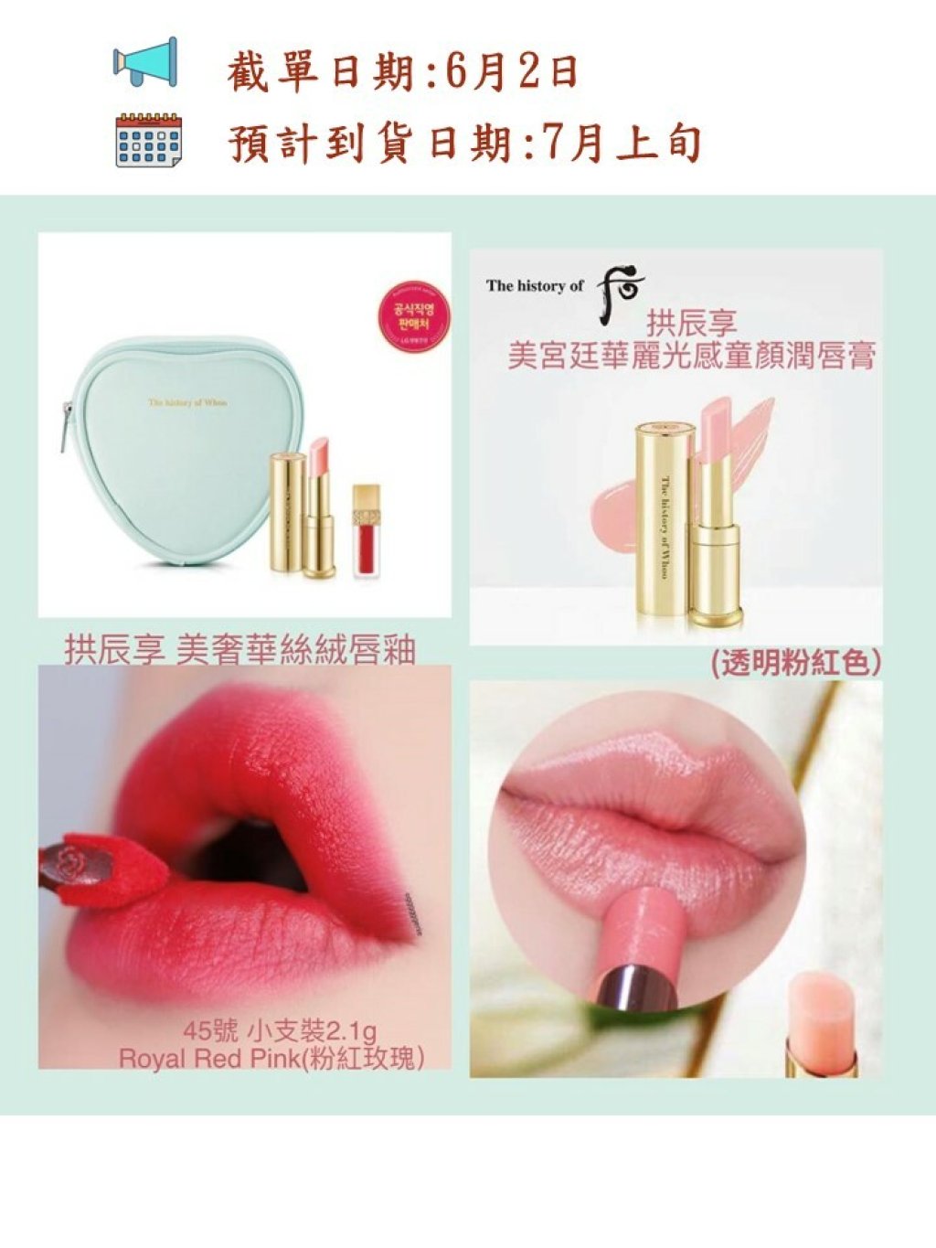 🆕最新限量版🌸The History of Whoo (后) 拱辰享 美 宮廷華麗光感童顏潤唇膏 套裝 😍