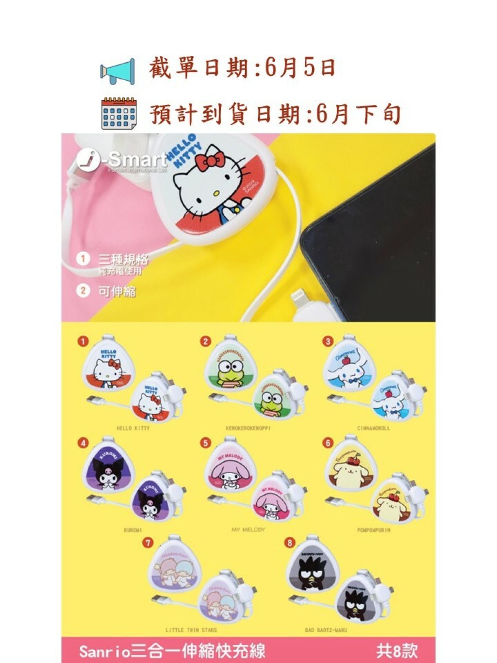Sanrio 三合一伸縮快充線🛢