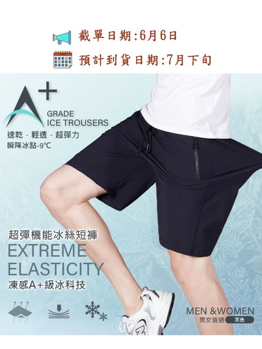 🧊凍感A+級冰科技 超彈機能束口冰絲短褲(黑色)