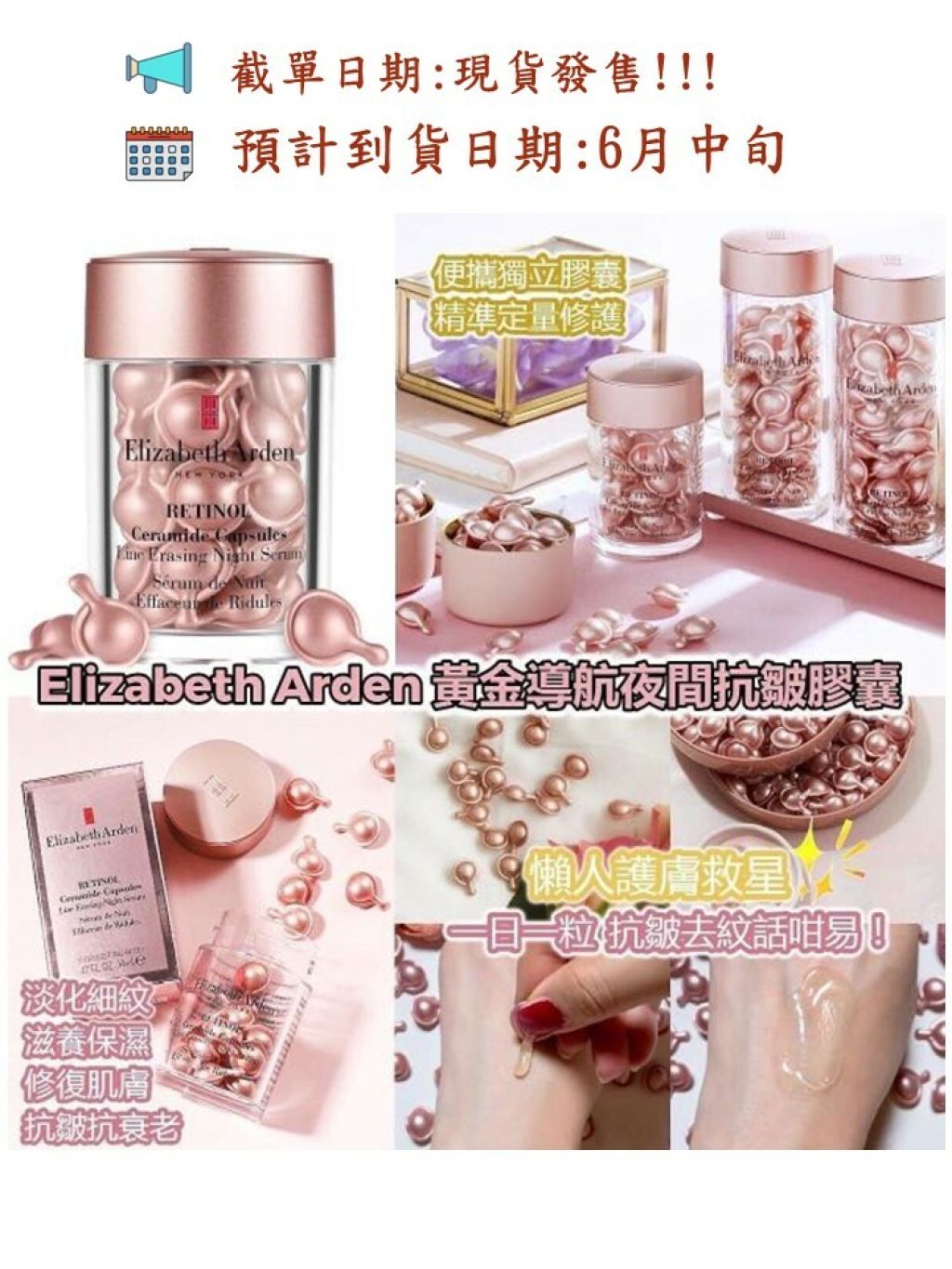 💗延續膠囊精華經典,Elizabeth Arden為女士們帶來更重點昇華的抗皺配方,於夜間重點修復肌膚,抗皺成份RETINOL維他命A醇助肌膚自生膠原蛋白、對抗歲月痕跡。產品同時保留經典皇牌成份Ceramide,幫助皮膚築起修復屏障、鎖水修護。兩者互相配合,能令使用者的皺紋及幼紋明顯地減少,同時改善了皮膚紋理、膚色及肌膚透明度,從而令皮膚回復年輕飽滿。