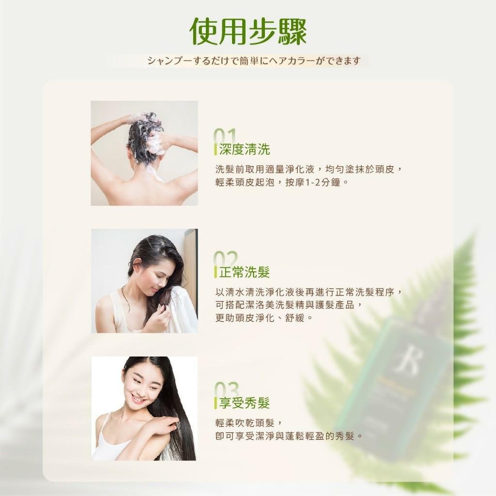 【使用方法】在洗髮之前,先取適量淨化液均勻塗抹頭皮至起泡
