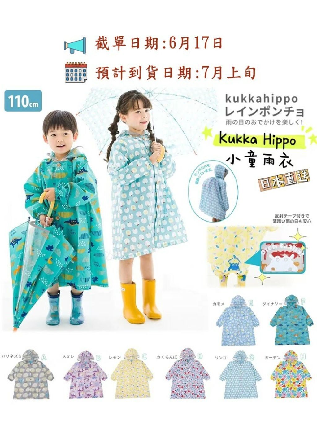 日本 Kukka Hippo 是由一家擁有80年歷史的雨傘☂️製造品牌。設計有童趣,色彩繽紛✨,還充滿了適合兒童的獨創性。設計簡潔可愛🥰的雨衣。