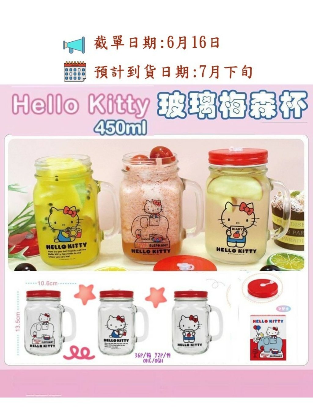 🟡Sanrio Hello Kitty 玻璃梅森杯 450ml🟡
