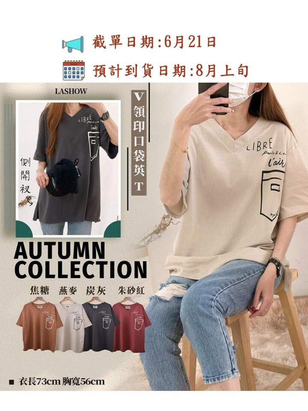尺寸:FREE SIZE (衣長56cm、胸寬73cm)