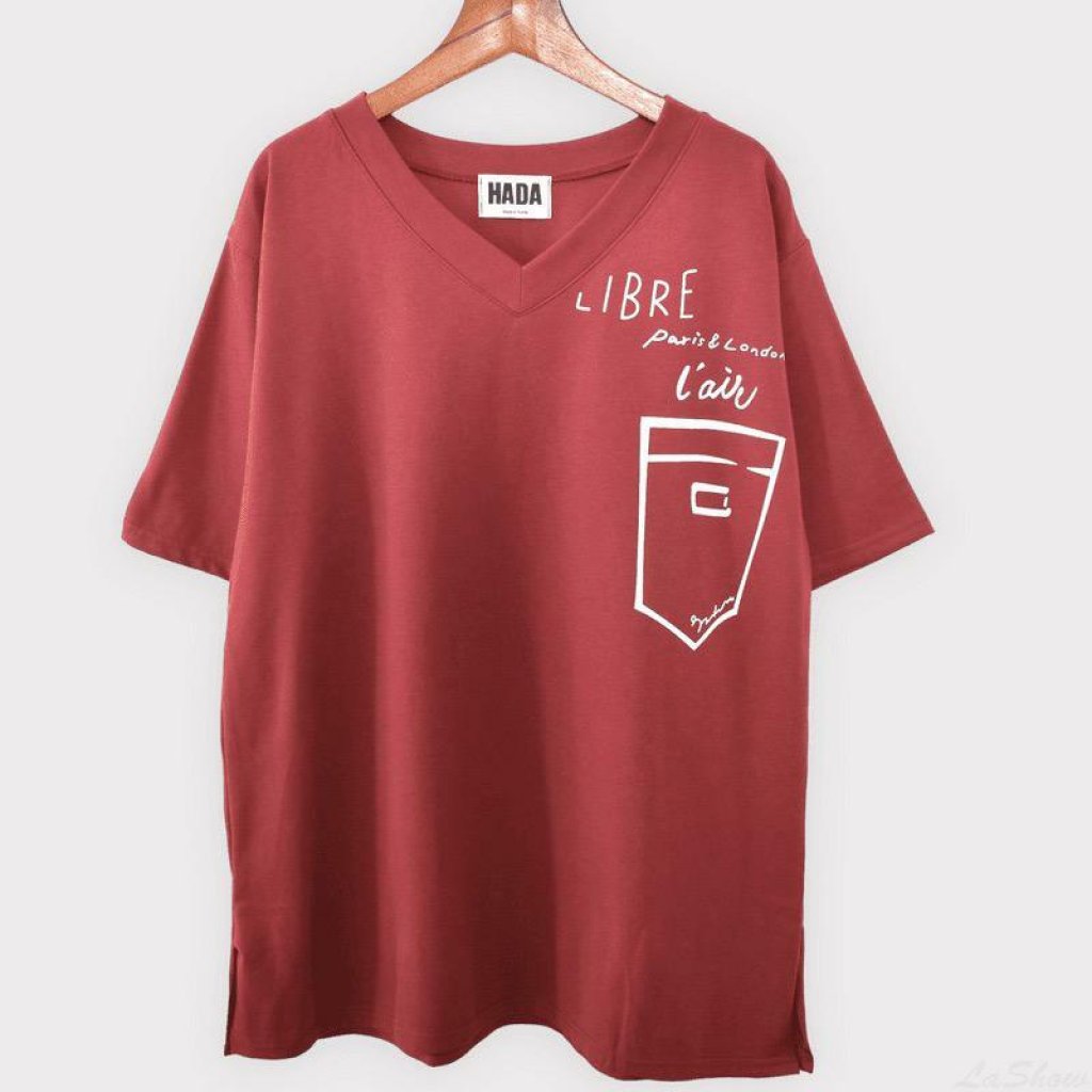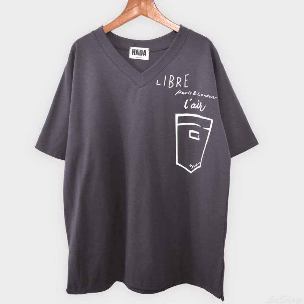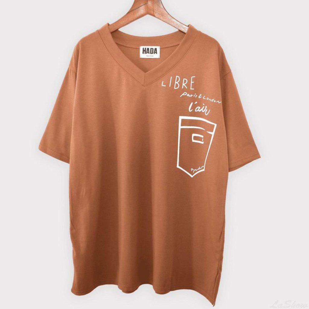 V領印花口袋側開衩短T