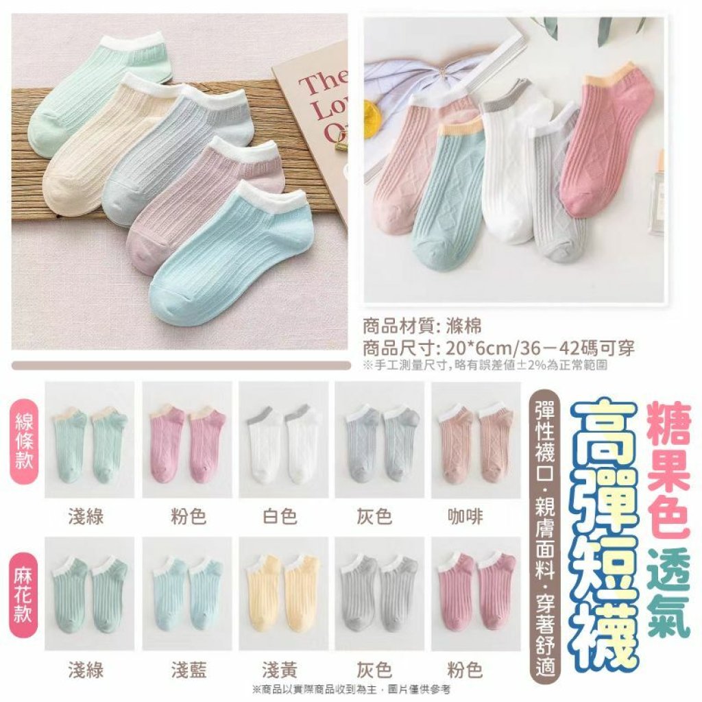 🟡糖果色透氣高彈短襪1包10雙 (款式顏色隨機)🟡️