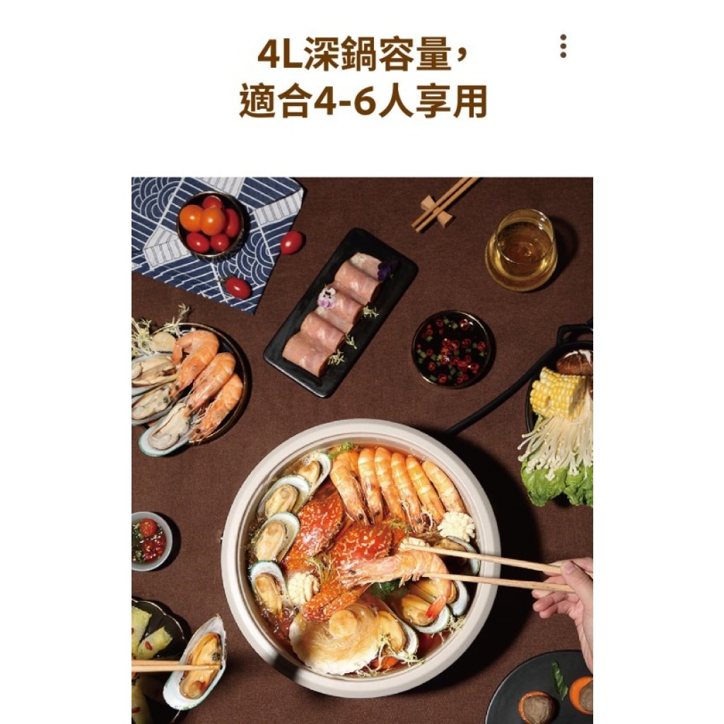 - 4L 深鍋容量,適合4-6 人享用