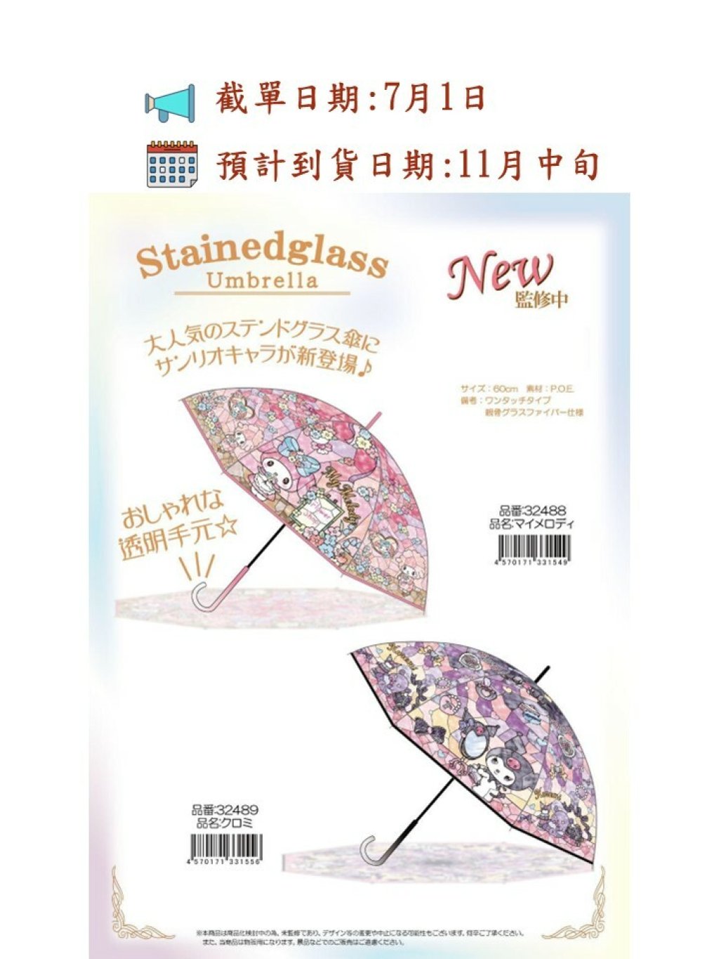❤️靚貨必需要等待🤭Sanrio最新款玻璃透明幻彩雨傘☂️現正接受預訂🥳