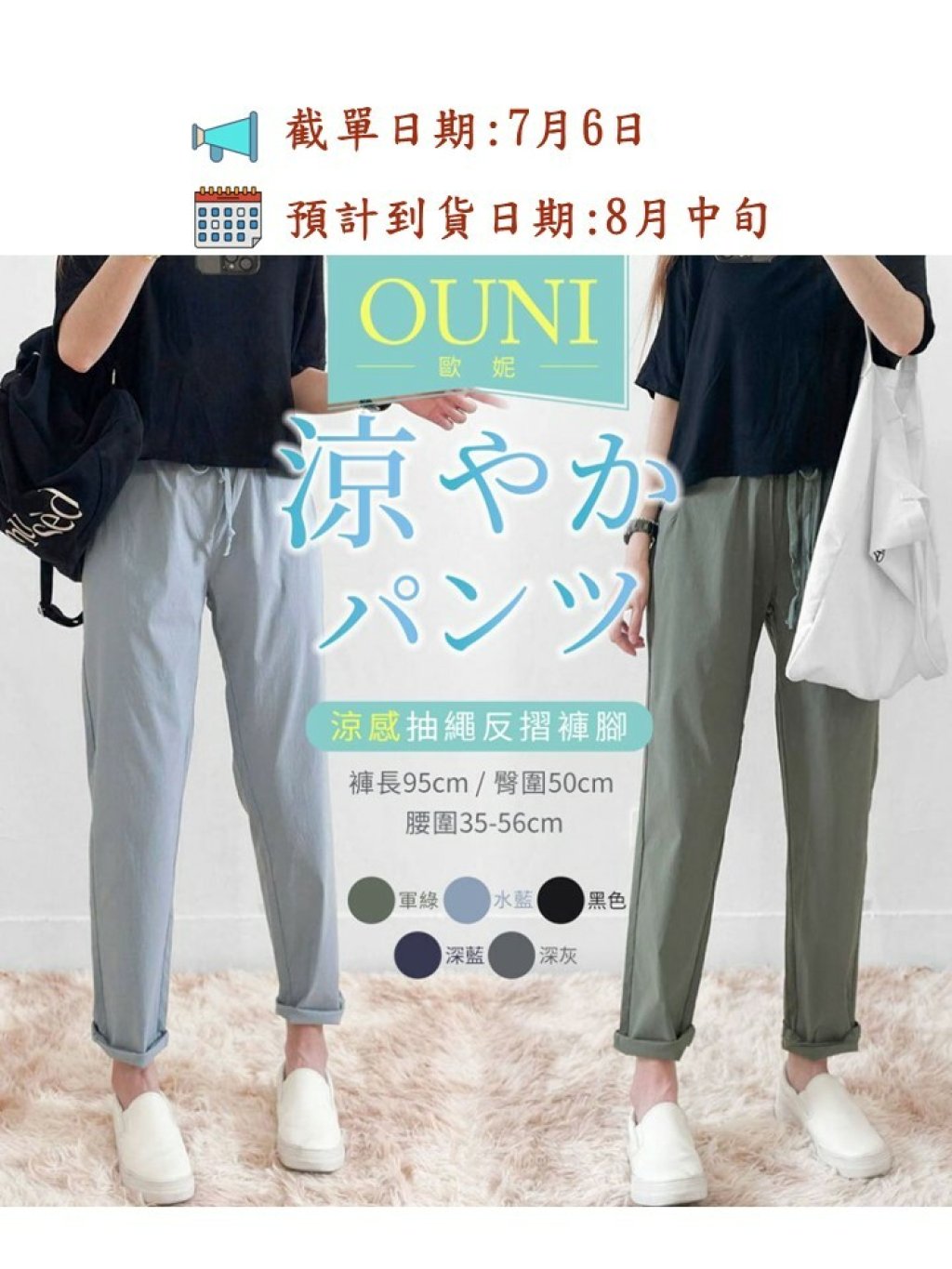 🧊歐妮Ouni 涼感抽繩反摺褲腳長褲