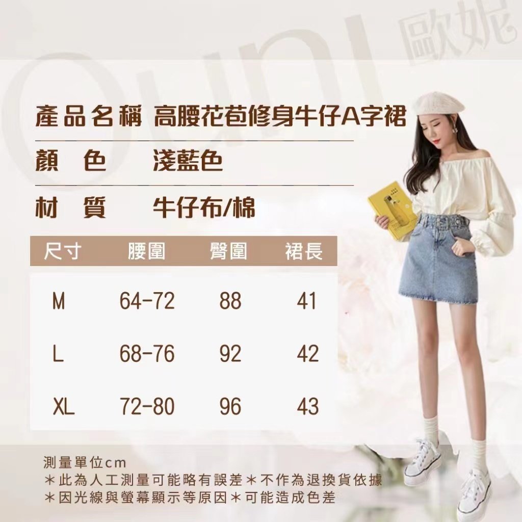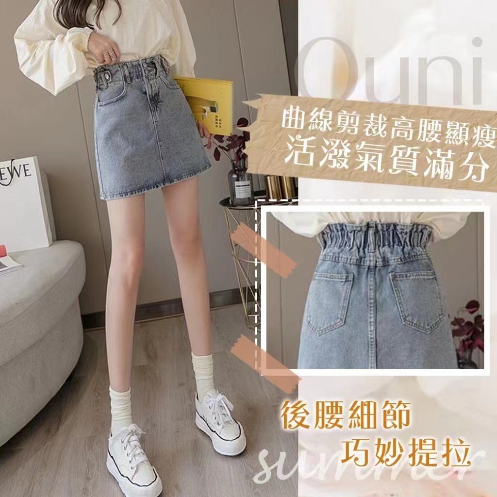 歐妮 Ouni 高腰花苞修身牛仔A字裙