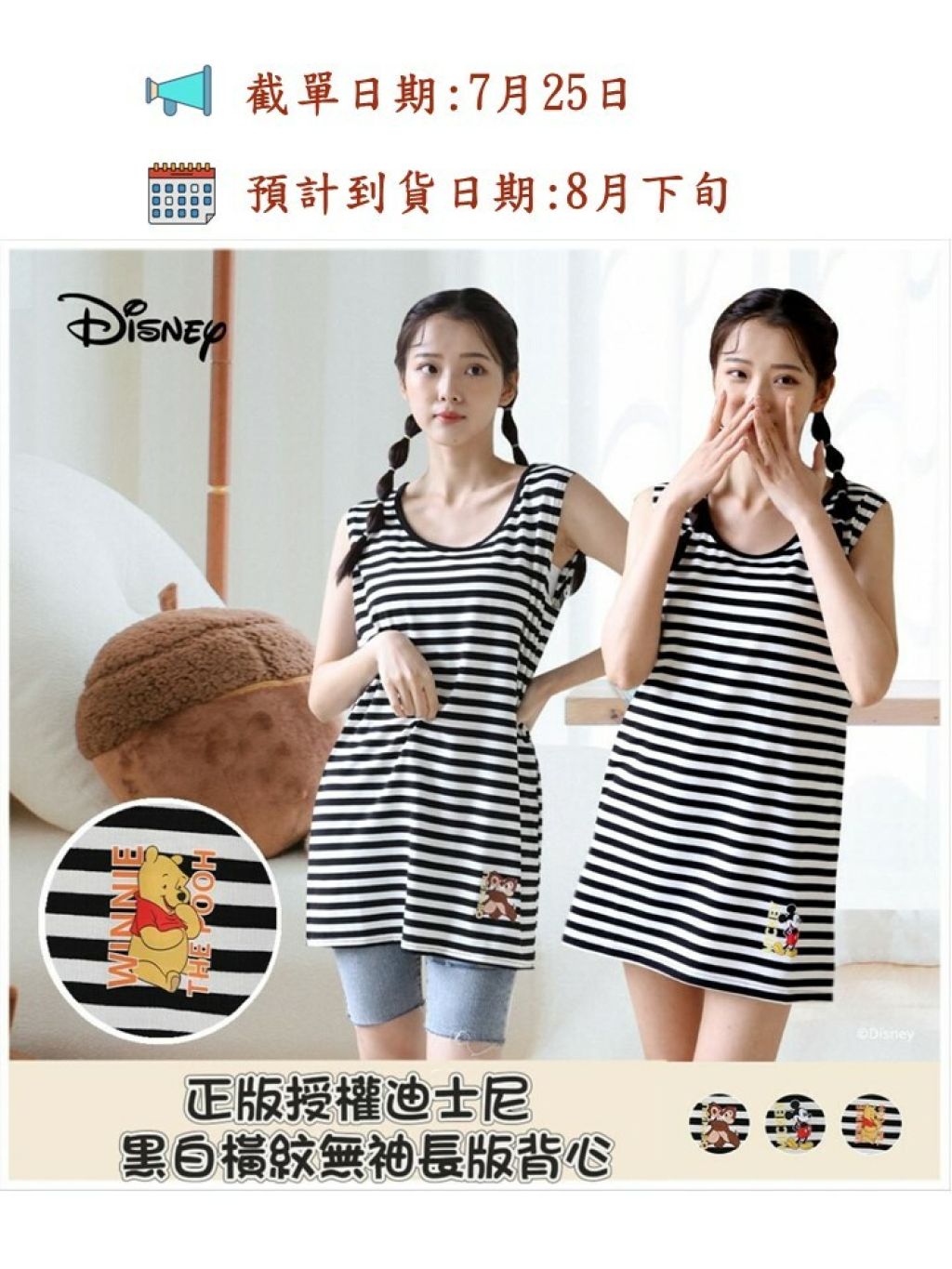 🟡迪士尼 黑白橫紋無袖長版背心🟡