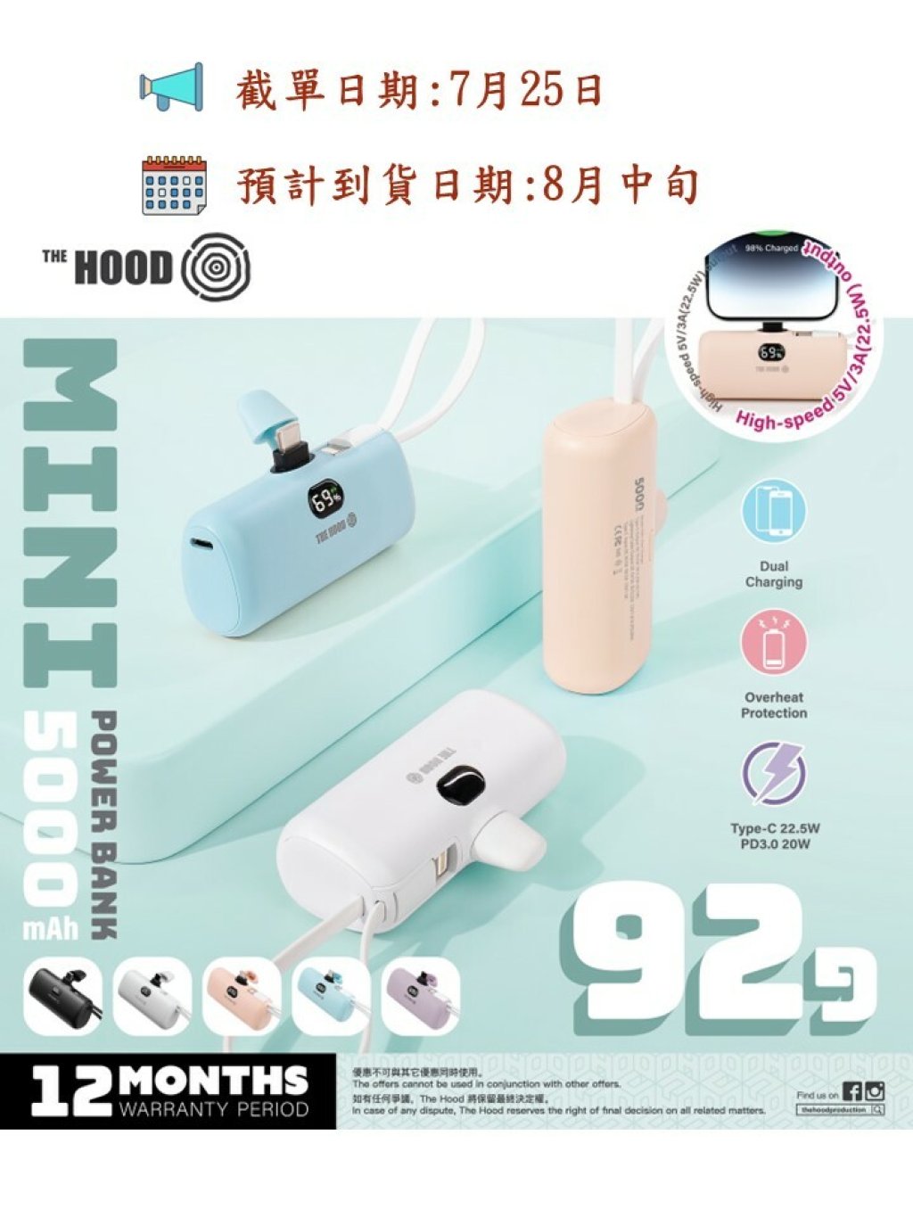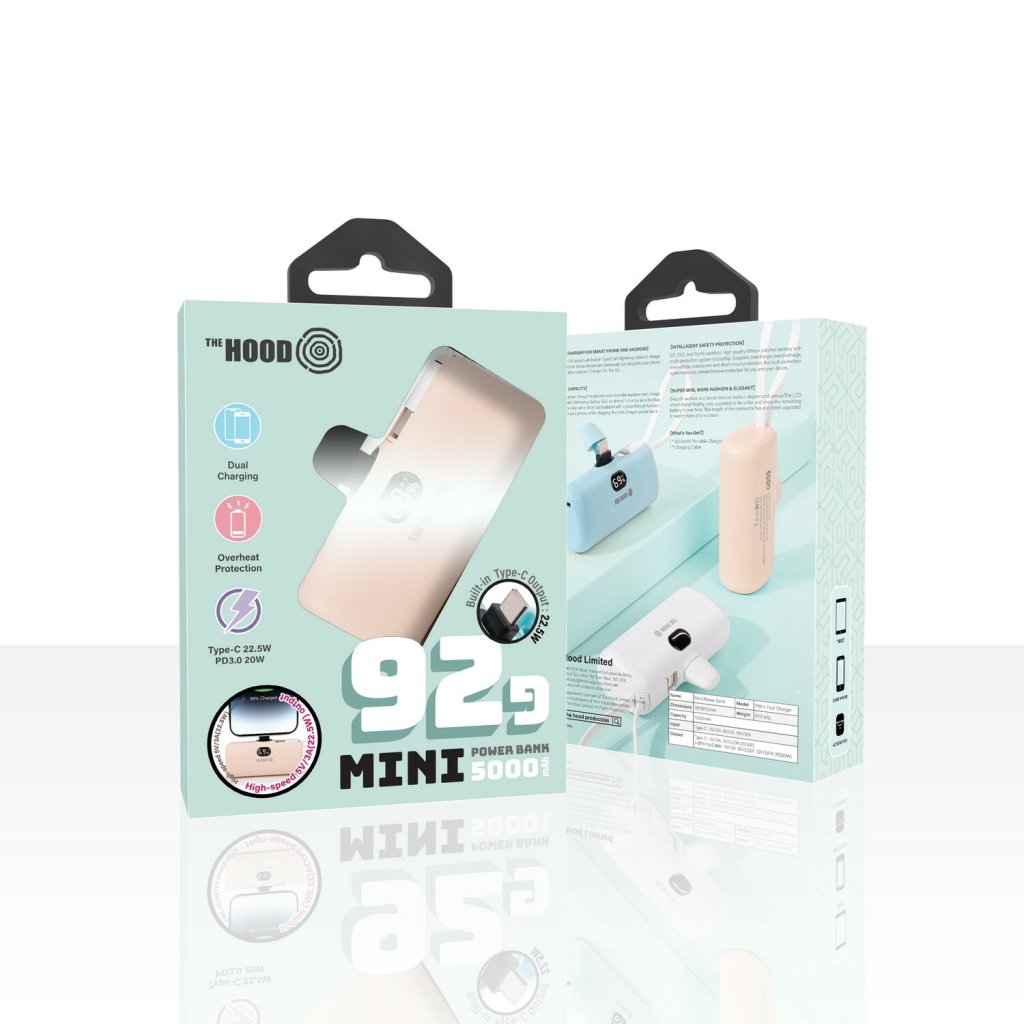 THE HOOD 直插式 (Type C) 快充22.5W <PD3.0 20W 流動充電器 P60+ Mini Power Bank 5000mAh