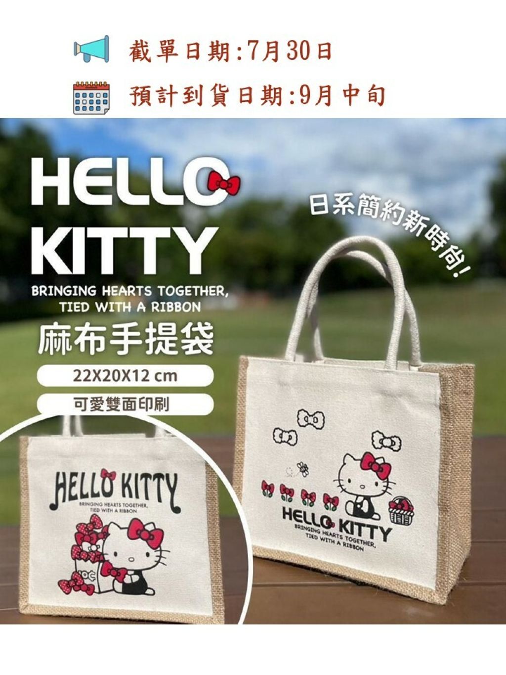 Hello Kitty 麻布手提袋蝴蝶結款1組2個
