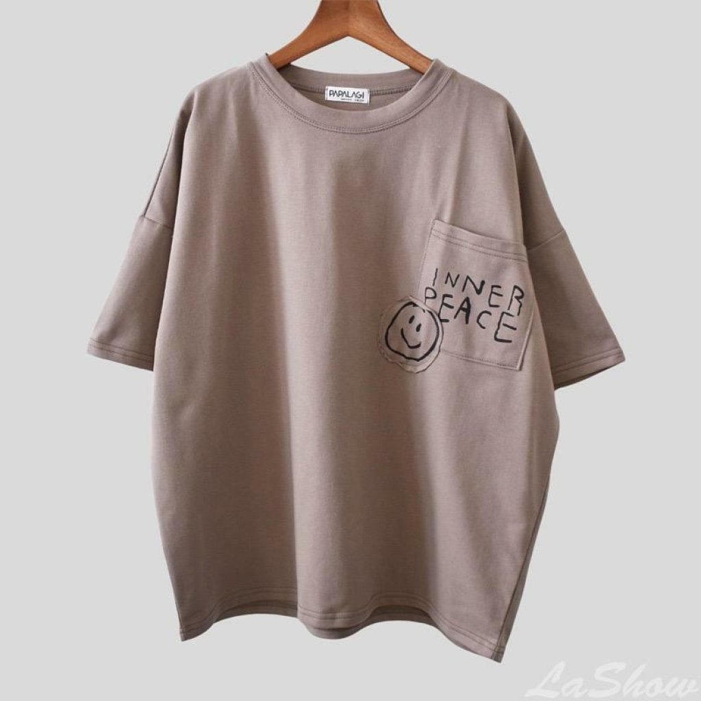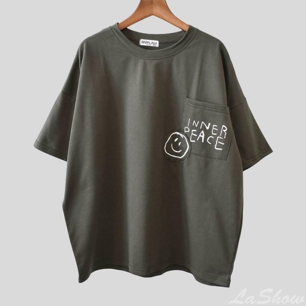 貼袋微笑英寬T恤