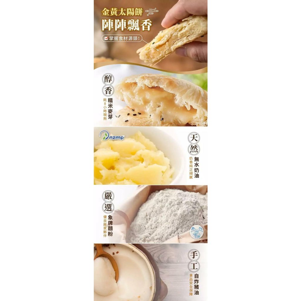 自炸豬油,金黃香酥外皮,經典滋味,醇香太陽餅