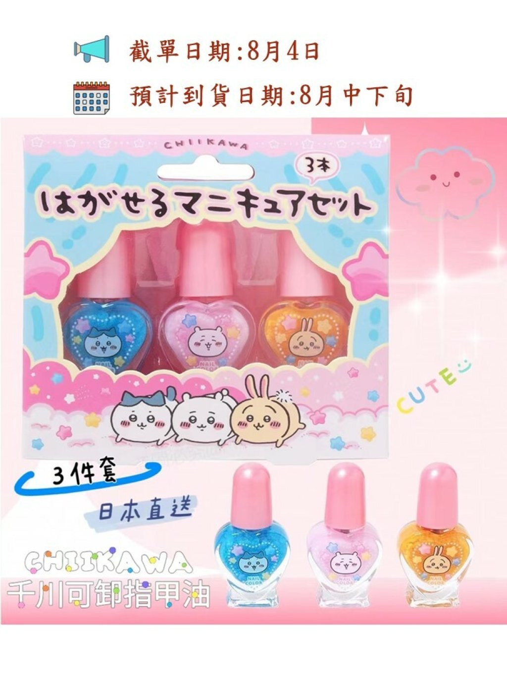 🎌日本直送 CHIIKAWA千川可卸指甲油 3 件套🎌