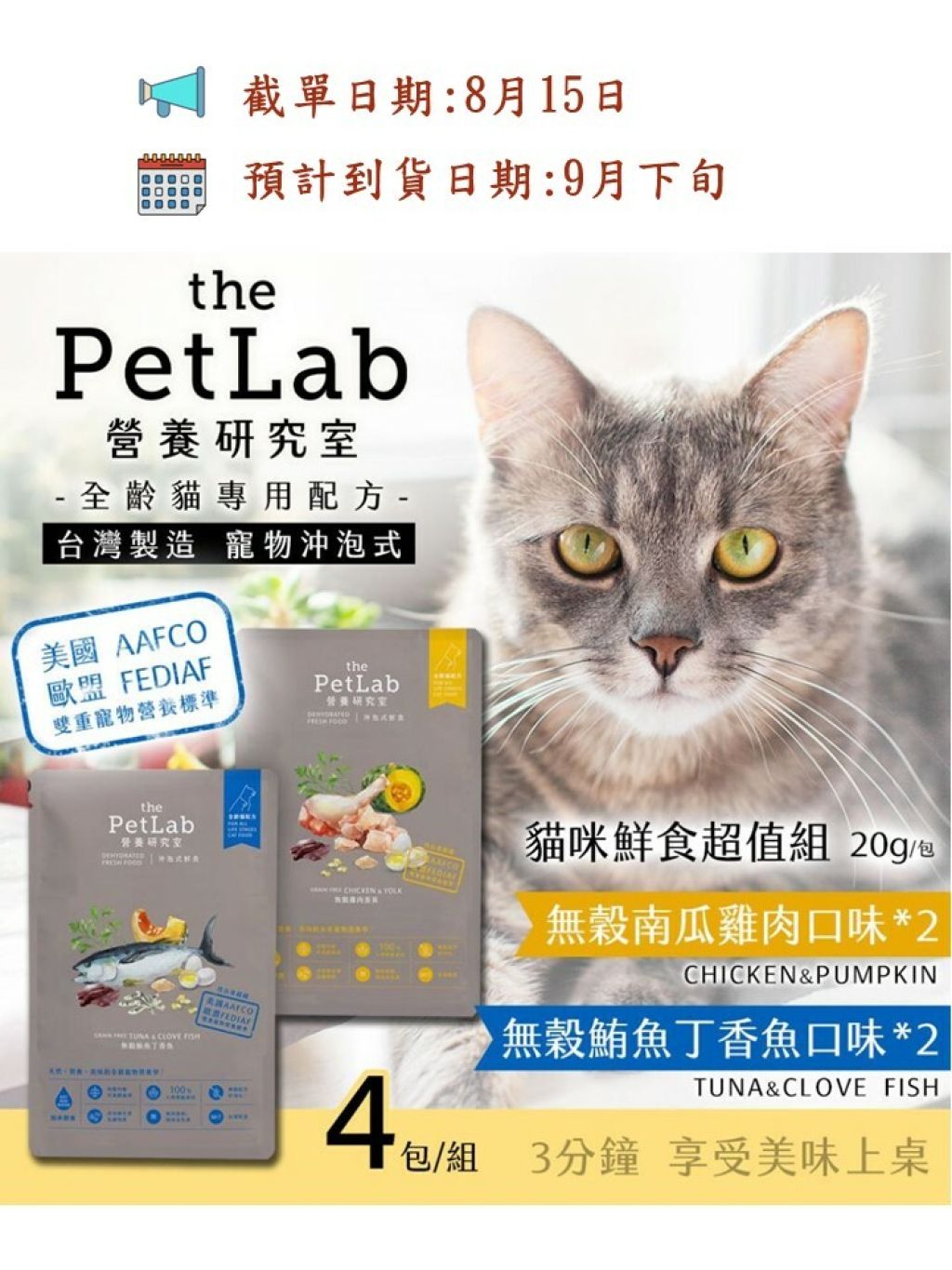 台灣製造 The Pet Lab 寵物沖泡式 貓咪鮮食超值組 20g/包【一組4包】