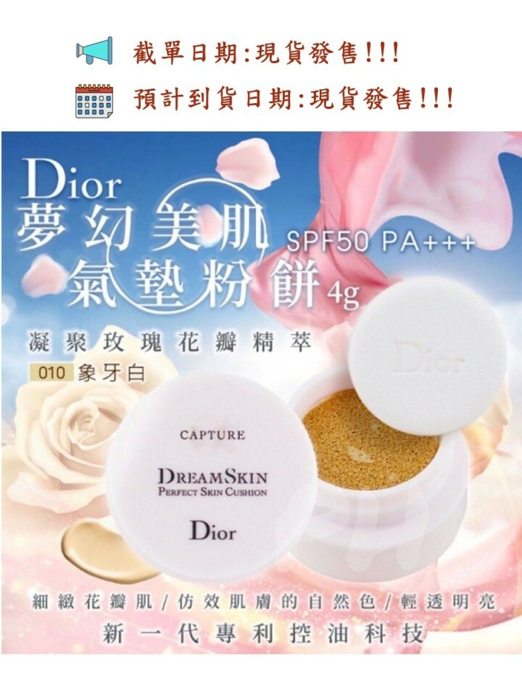 DIOR 夢幻美肌氣墊粉餅SPF50 PA+++ 4g #010象牙白 (韓免版)