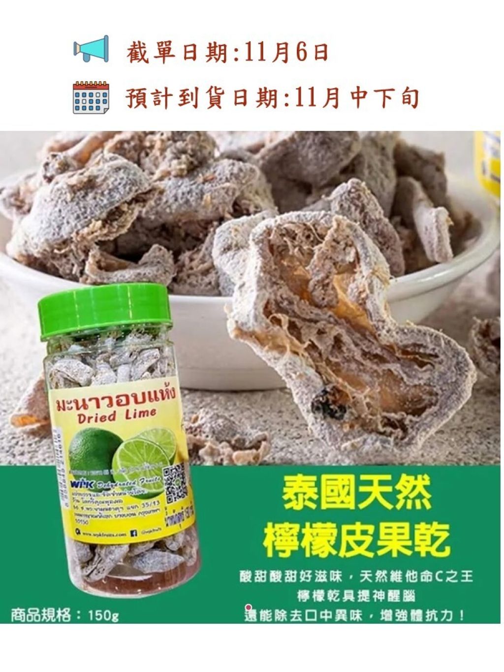 泰國直送🇹🇭泰國青檸乾 150g (1套3樽)