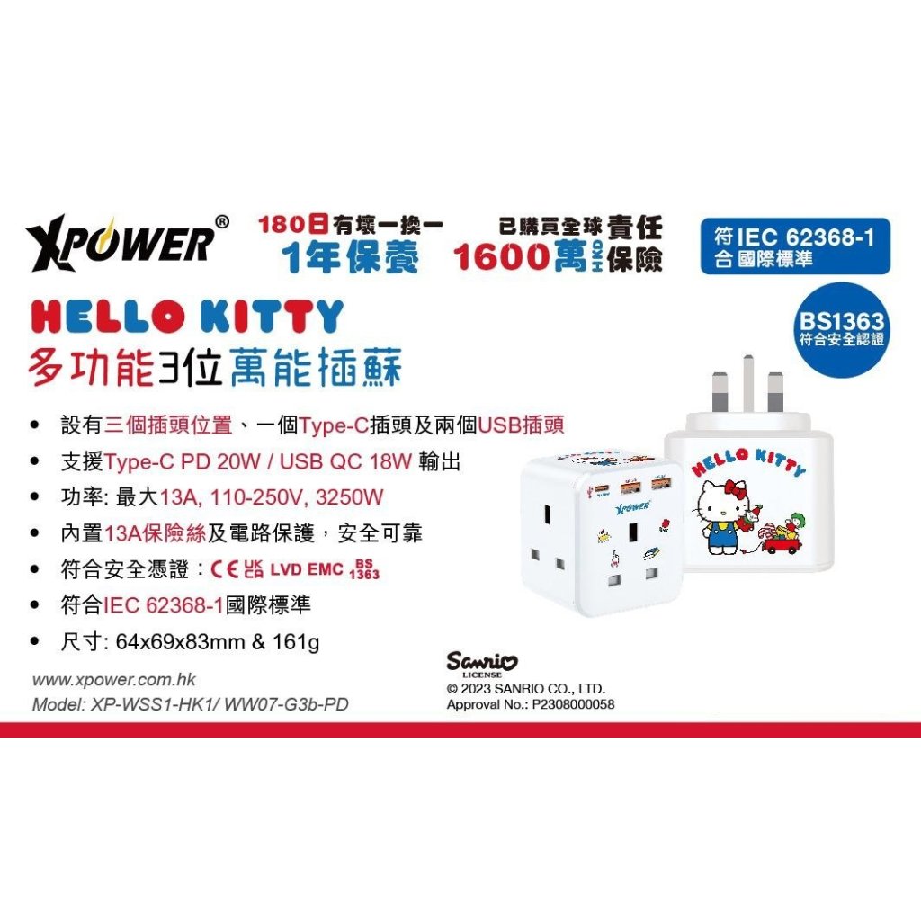 Hello Kitty多功能3位萬能插蘇