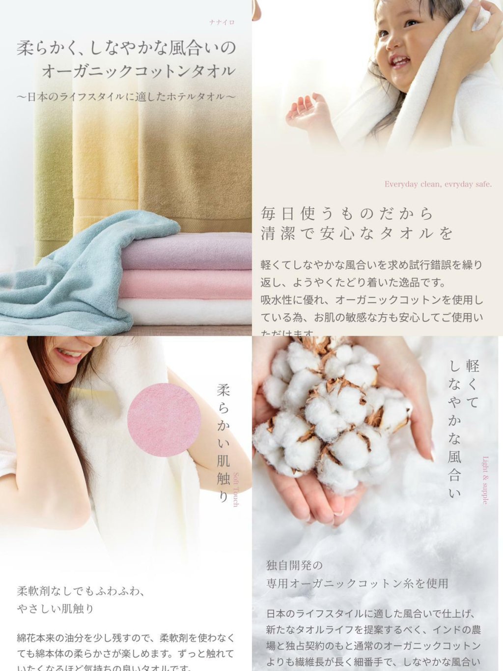 使用傳統「後曬製法」,一般毛巾使用蠟質增加耐用性,但會減低柔軟及吸水度。使用「後曬製法」是透過洗滌程序,除去纖維中的膠質、蠟質及其他雜質。