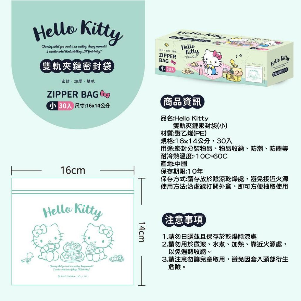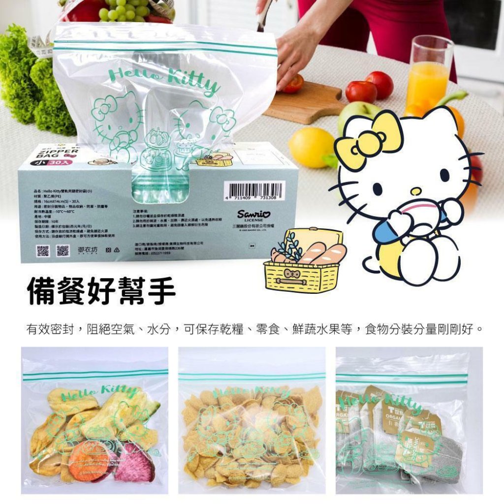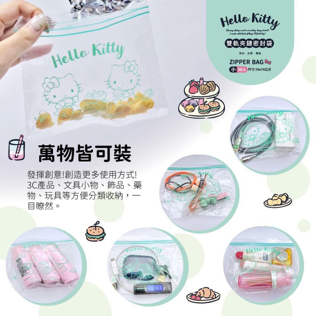 🟡Hello Kitty 雙軌夾鏈密封袋(小) 30入/盒 (1組5盒)🟡