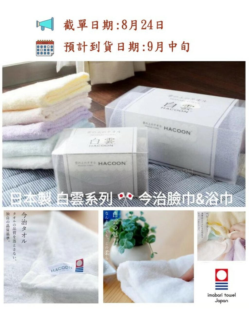 蓬鬆柔軟如白雲☁️、質感光滑的毛巾。~日本超高級Hacoon 白雲系列☁️開團 😍