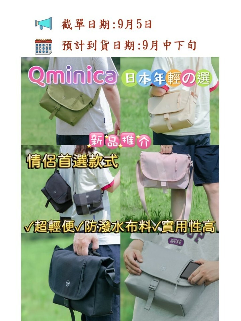 🟡Qminica 超輕便小青新斜孭袋-大🟡