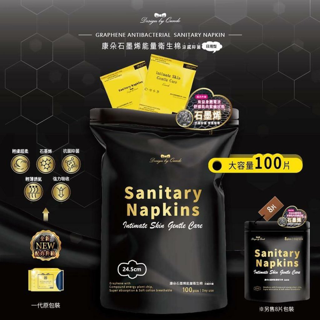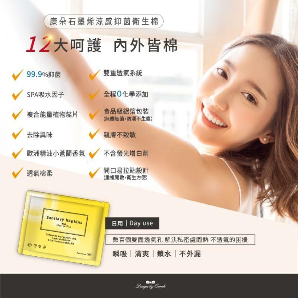 🟡升級版 康朵石墨烯涼感抑菌衛生棉 大容量裝100片/包 (日用 24.5CM)🟡