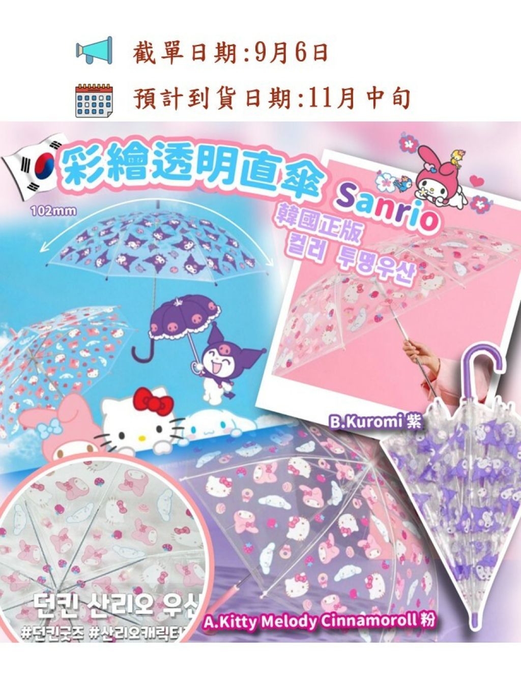🟡韓國 Sanrio彩繪透明直傘🟡