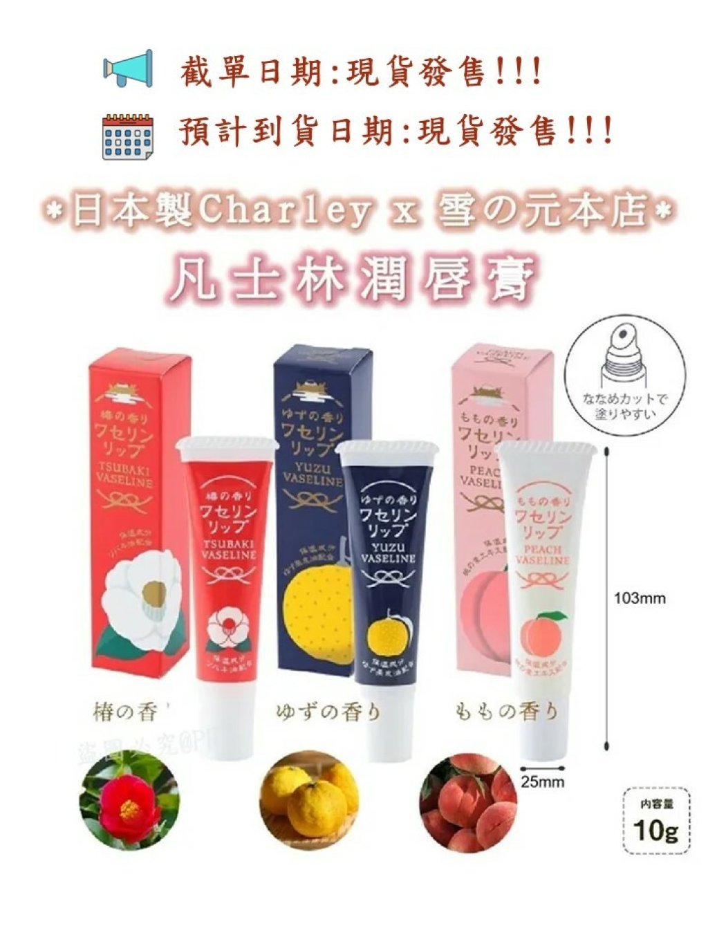 日本製CHARLEY x 雪の元本店 特別共同開發嘅凡士林潤唇膏💄,勁潤❣️開冷氣必備之選‼️