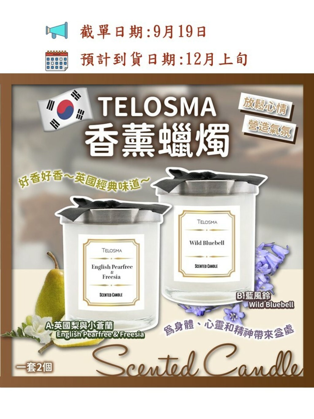 🟡韓國 Telosma香薰蠟燭(一套2個)🟡