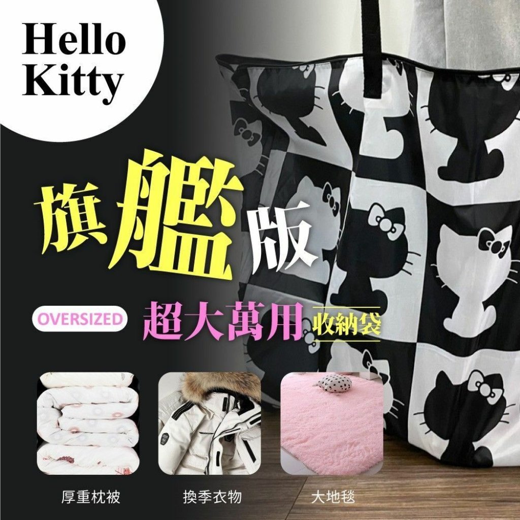🟡Hello Kitty 旗艦版超大萬用收納袋-黑白方格款 (一組2個)🟡