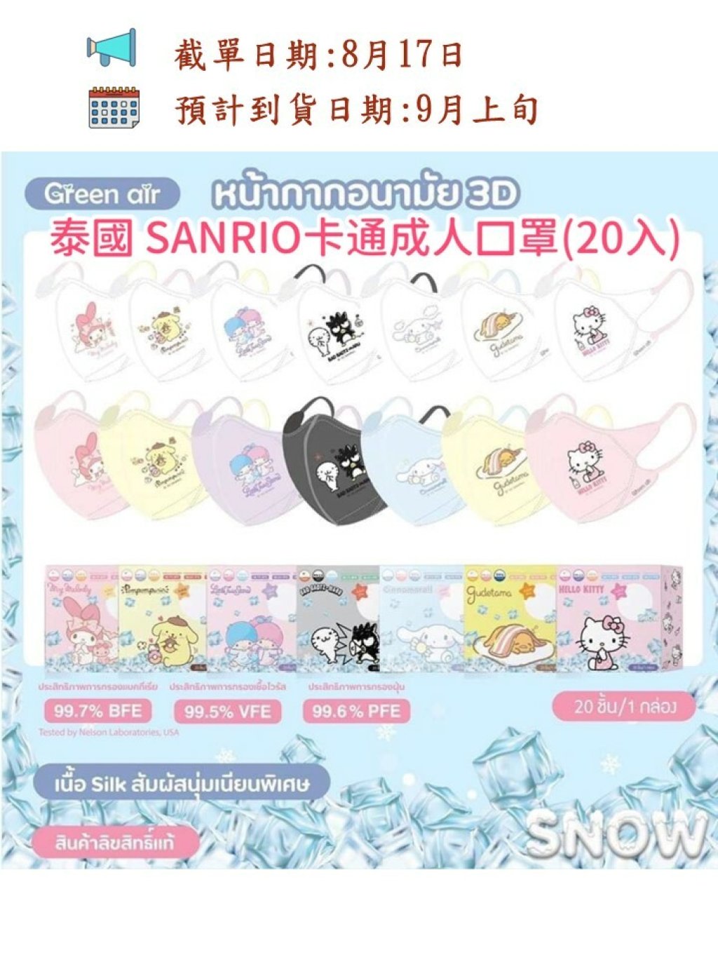 💟泰國 SANRIO卡通成人口罩💟